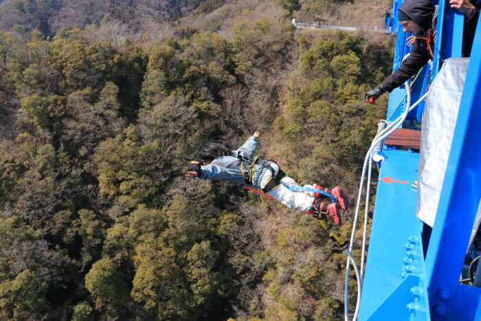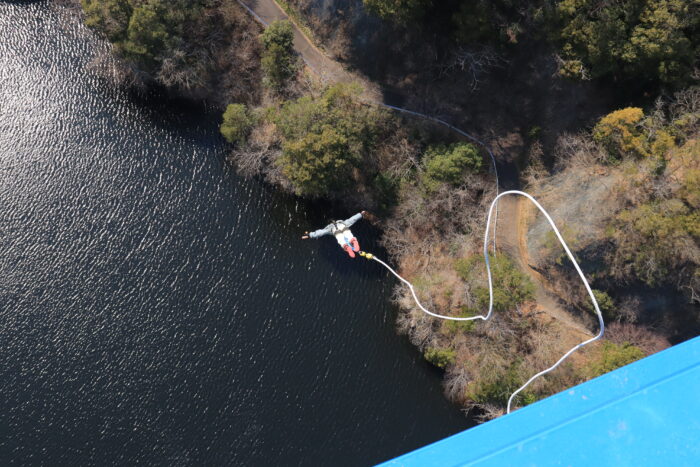 高さは日本屈指の100m級。ちなみに2026年現在、日本一高いバンジージャンプは岐阜にある200m級のものとのことで、機会があればやってみたい。